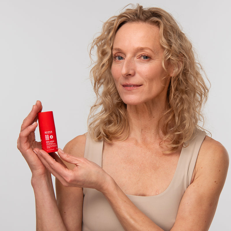 Prebiotics and probiotics help restore a more youthful skin microbiome, supporting optimal hydration and natural defense against irritants and environmental stressors. Unlike retinol-based anti-aging regimens, Meder’s menopause routine offers a gentler, non-irritating alternative that enhances elasticity and firmness while keeping even sensitive skin calm and comfortable.